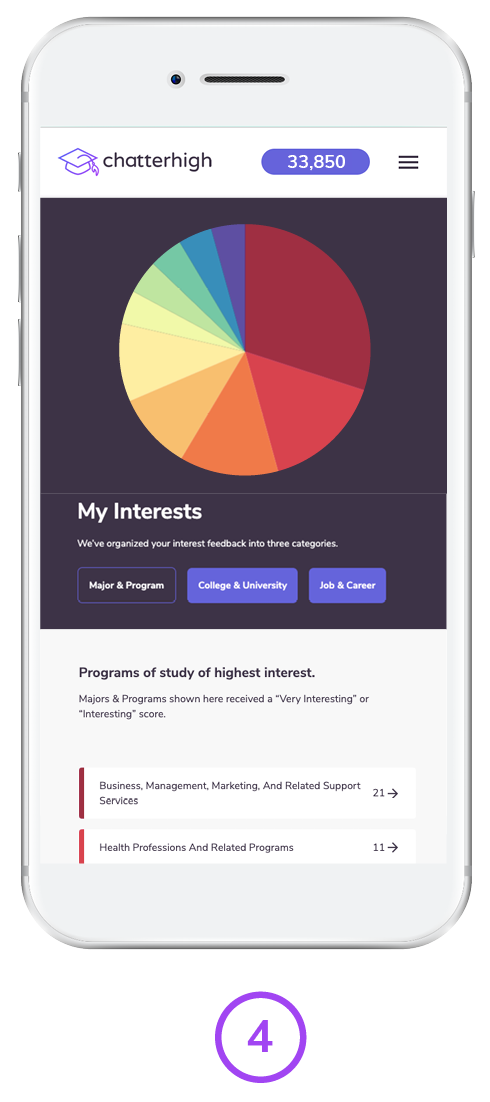 Discover new and exciting career options you may never have even heard of! ChatterHigh will build you a personalized profile about your interests as you answer more questions on the platform. You can use this information to research education and career pathways and possibilities to support your career development course work and decisions after high school.
