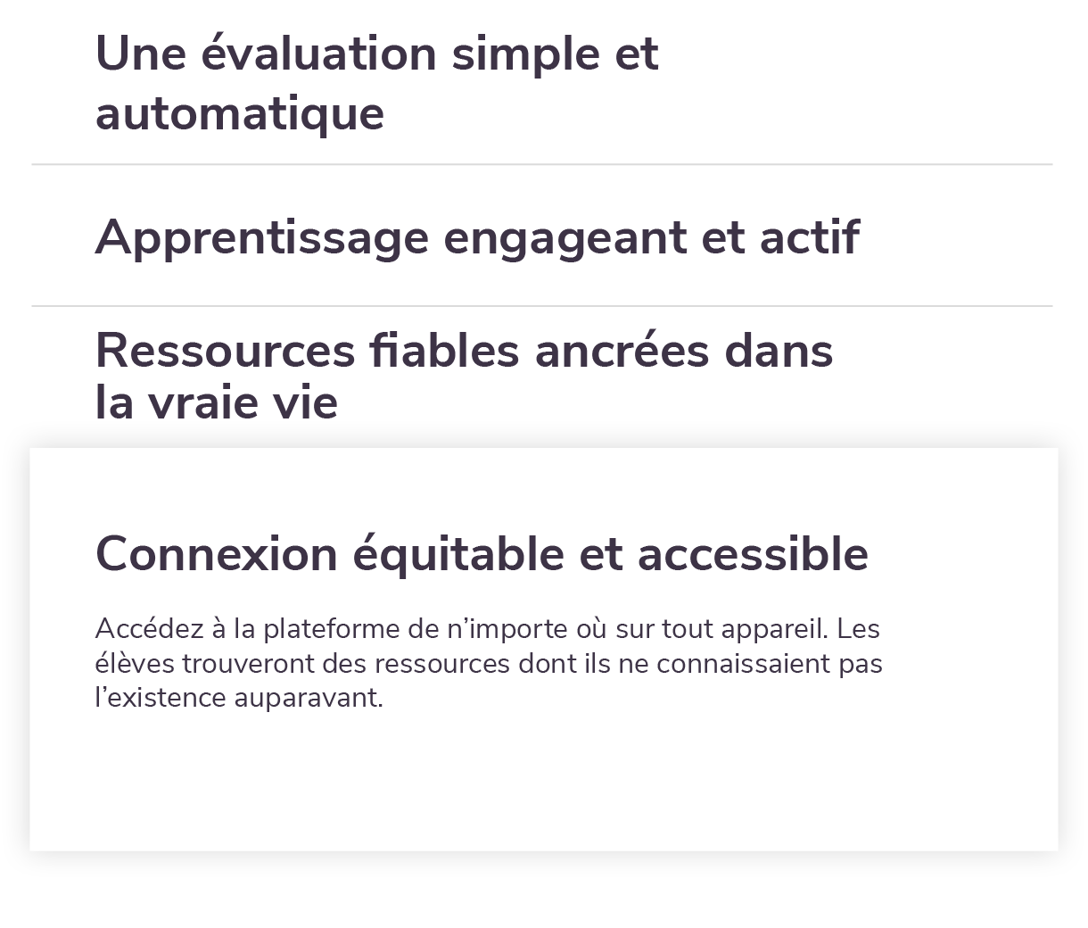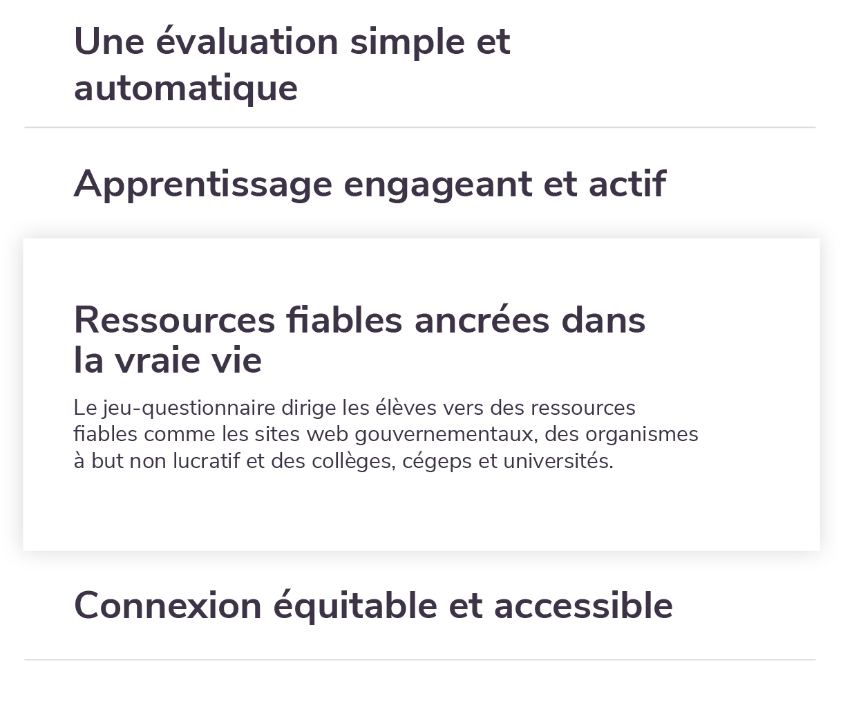Notre plateforme d'engagement numérique primée est facile à utiliser et permet aux apprenants de chercher activement dans des ressources fiables en ligne afin de se préparer pour la réussite postsecondaire.